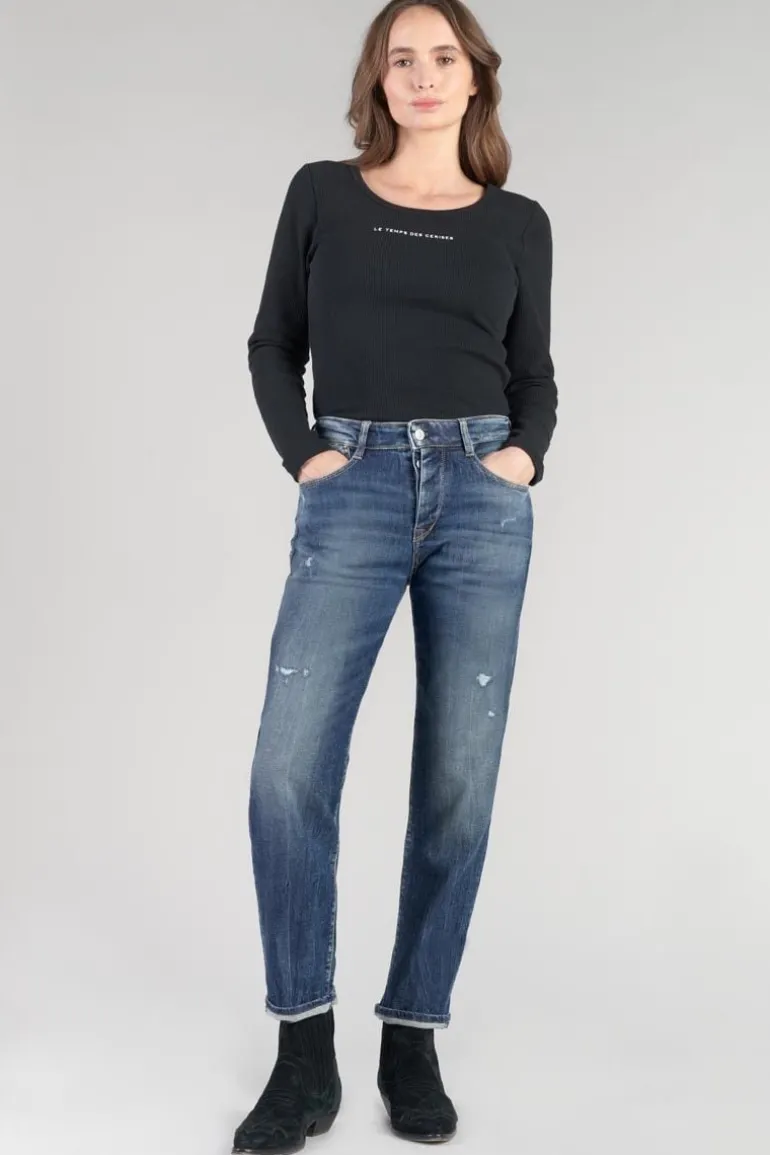 Le Temps des Cerises Bambino 400/17 Mom Taille Haute 7/8Eme Jeans Destroy Bleu N°2-Femme Coupe Mom