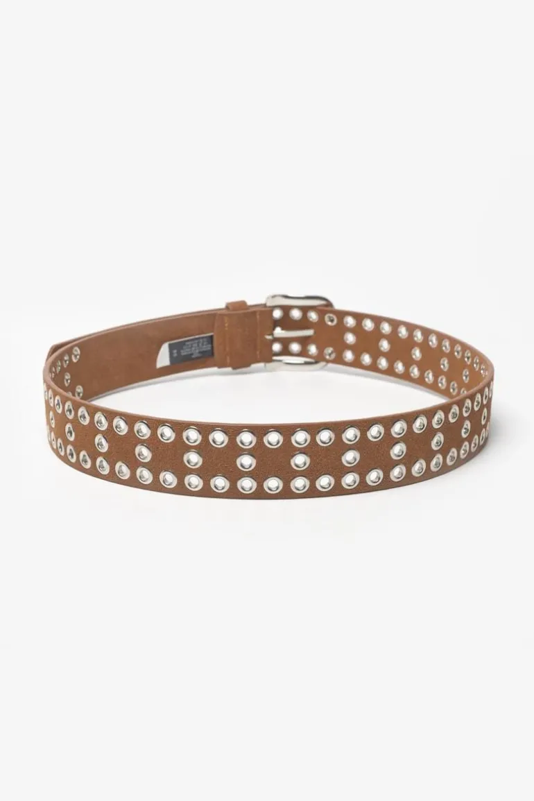 Cette Ceinture Lucia Est Ideale Pour Completer Vos Tenues Et Donner Un Cote Rock Avec Son Cuir Velours Pour Un Aspect Daim Cognac Habille D’Oeillets Metalliques Argentes Et Sa Boucle Argentee.