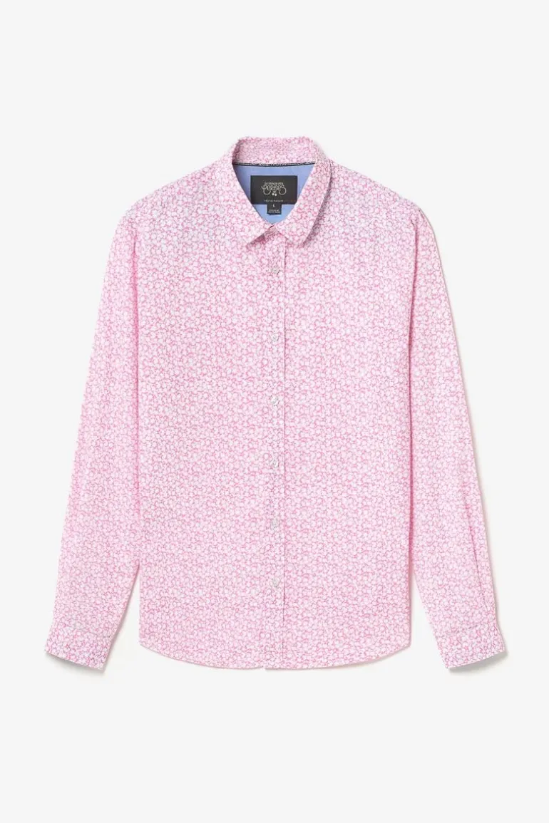 Cette Chemise Brotel Rose A Motif Fleuri Blanc Vous Donnera Un Style Casual Et Elegant Avec Sa Fermeture A Boutons Ainsi Que Ses Manches Boutonnees Avec, Aux Revers Des Poignets, Un Lisere Personnalise « Le Temps Des Cerises »