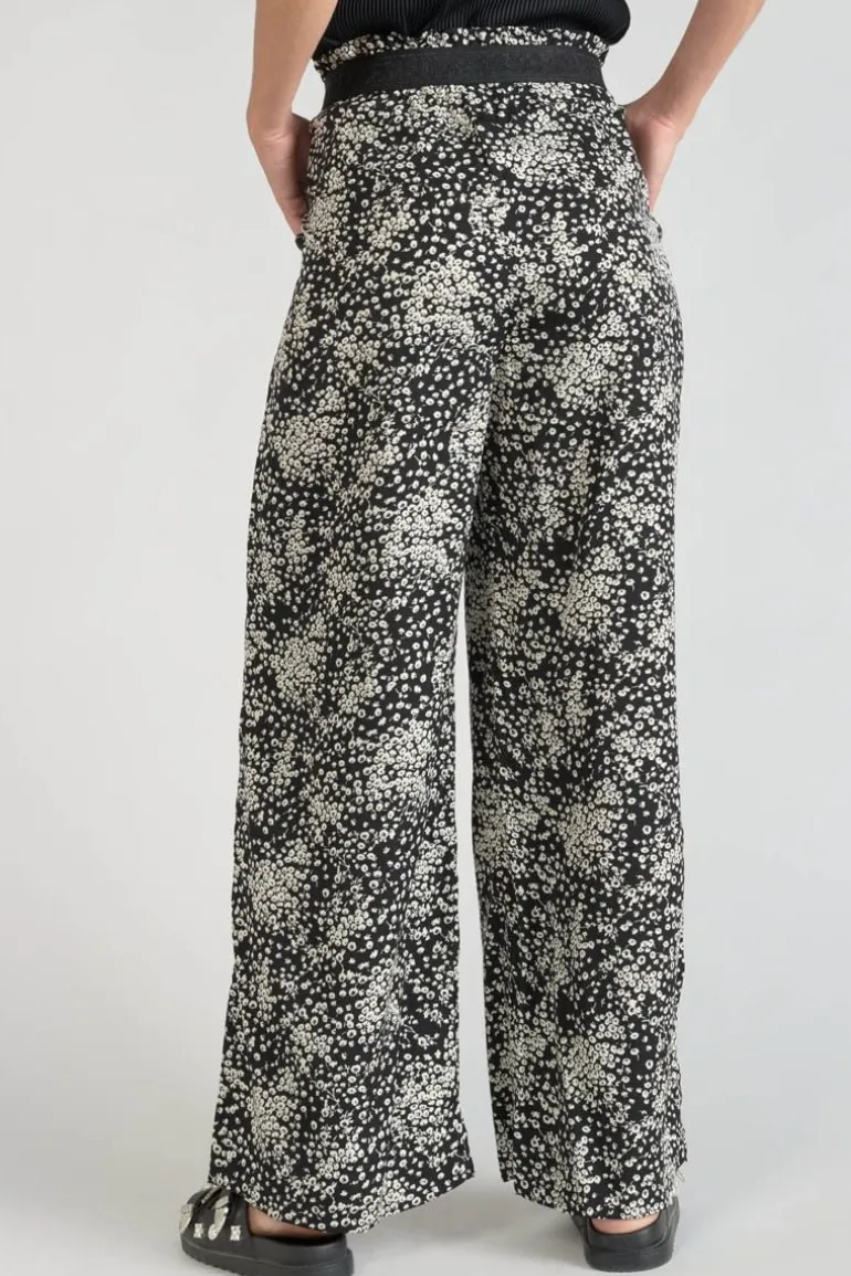 Le Temps des Cerises Pantalon Fluide Luisa A Motif Fleuri Noir Et Blanc-Femme Pantalons & Chinos