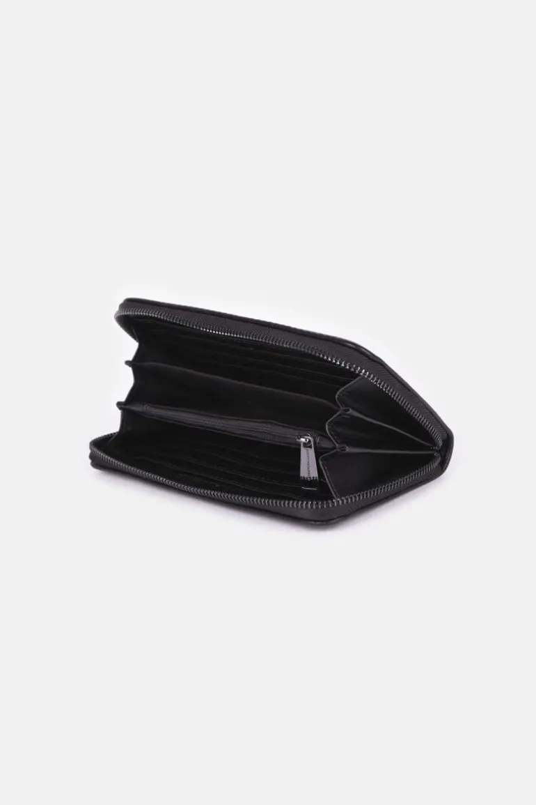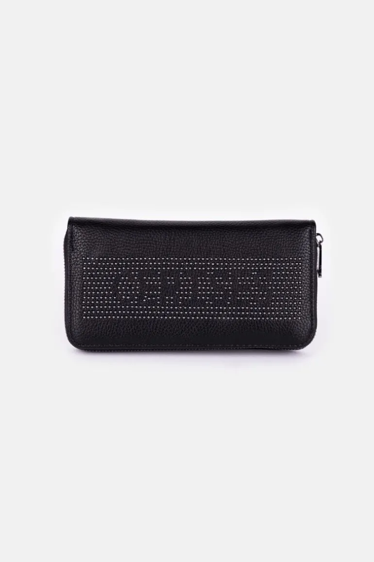 Ce Portefeuille Loren Noir Est Un Indispensable Avec Son Format Tout-En-Un Et Son Inscription Cloutee « Cerises » Qui Apporte Un Cote Rock.
