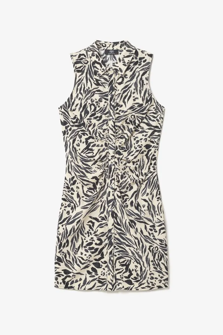 Cette Robe En Lin Melange Muna Est Tres Feminine Et Elegante Avec Son Motif Animalier Zebre A L’Effet Aquarelle, Son Col Chemise Et Ses Boutons Argentes Sur Toute La Longueur. Pour Plus De Style, Des Fronces Habillent La Robe Le Long De La Fermeture A Boutons.