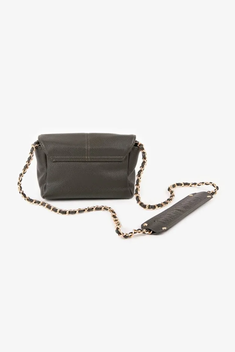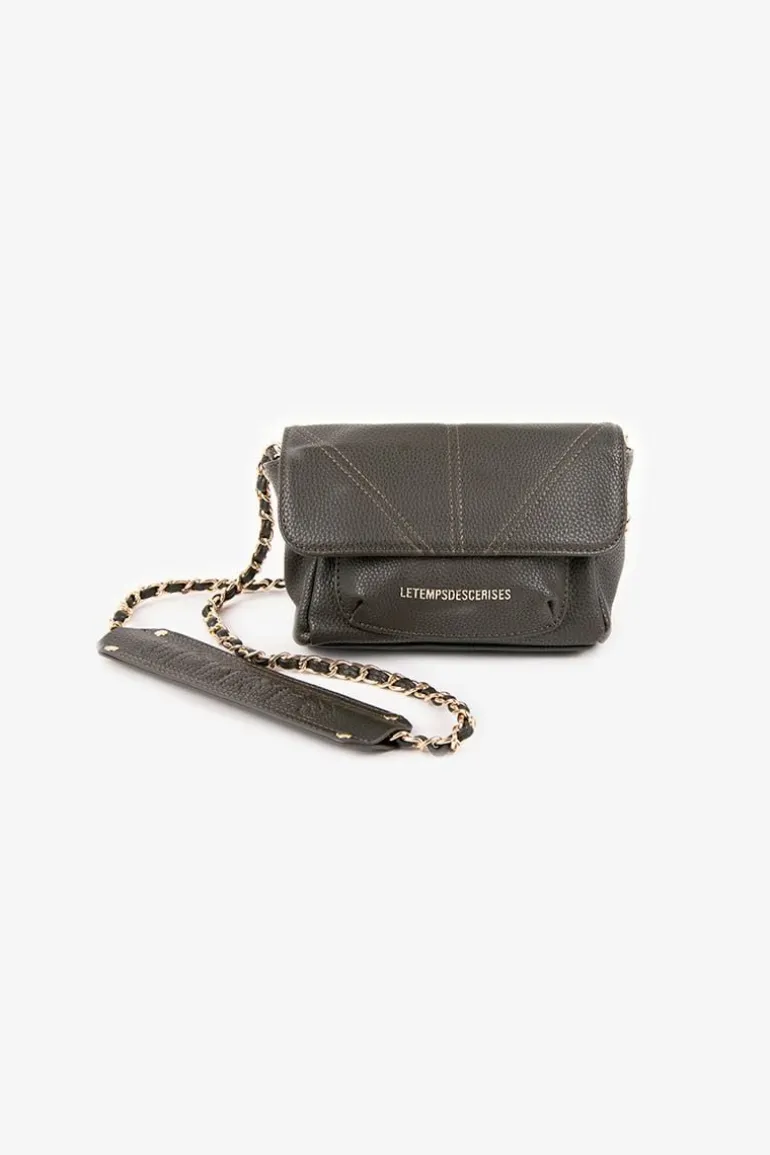 Ce Sac A Bandouliere Rose Apportera De L’Elegance A Votre Tenue Avec Sa Couleur Kaki Vert Et Vous Accompagnera Partout En Journee Comme En Soiree Avec Son Petit Format. Pour Plus De Style, L’Inscription Le Temps Des Cerises Doree A L’Avant Et Sa Bandouliere En Chaine Doree Avec Renfort D’Epaule Cloute Et Personnalise « Cerises » Apportent Un Cote Rock A La Piece. Pour Plus De Confort, Le Sac Se Ferme A L’Aide D’Un Bouton Pression Et D’Un Zip Et Un Petit Compartiment A L’Avant Accompagne Le Plus Grand.