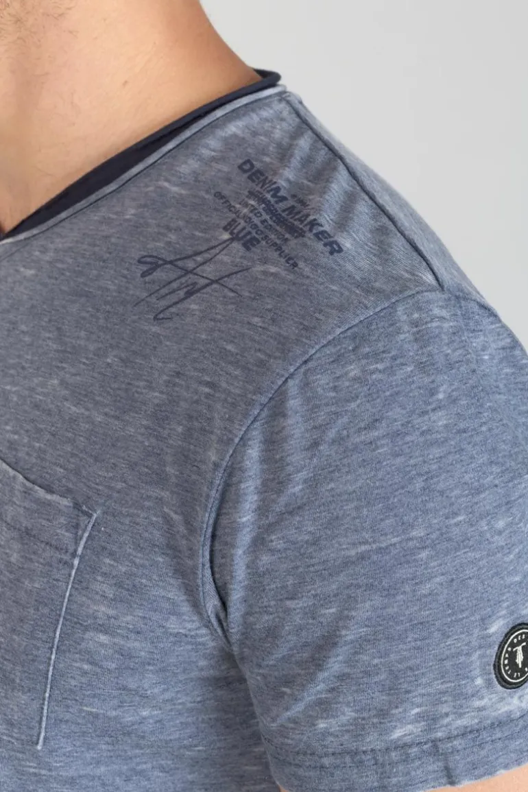 Ce T-Shirt Mavoc A Un Look Casual Avec Son Tissu Leger Bleu Chine A L’Effet Delave, Son Col En V Double Bicolore Avec Bo…