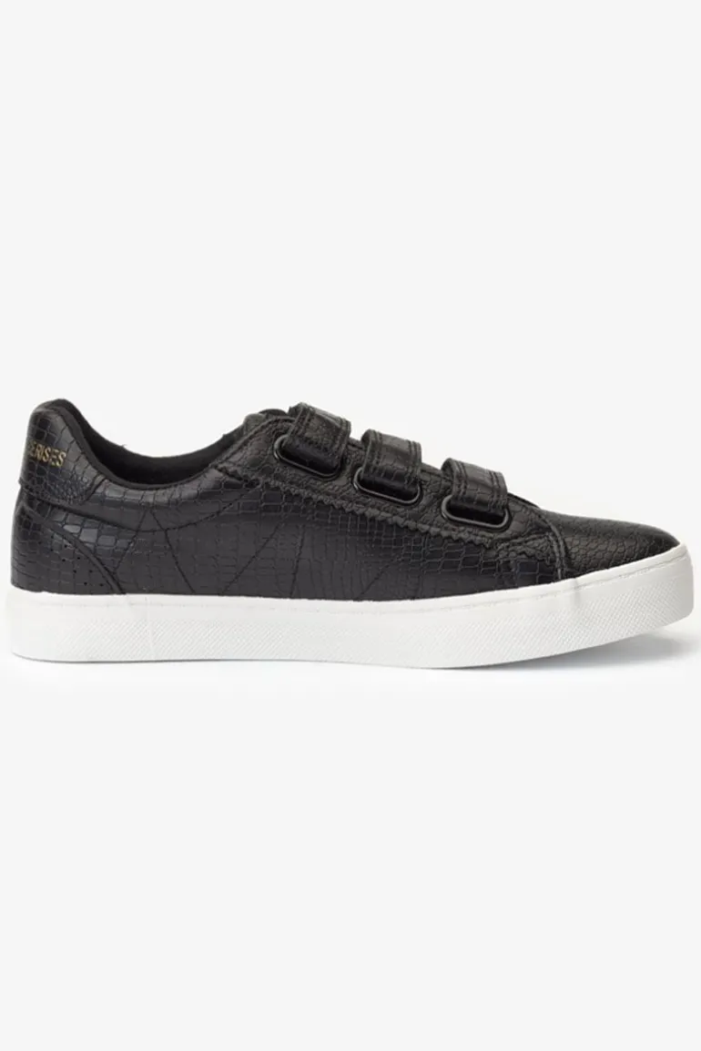 Ces Baskets Vic Noires Sont Un Indispensable De Votre Dressing Avec Leur Effet Python Et Leur Fermeture A Scratch Tres Tendance. Pour Plus De Feminite, Plusieurs Details Dores Habillent Les Baskets Comme Une Application Metallique Cerises Sur Un Des Scratchs, Un Imprime Le Temps Des Cerises Sur Le Contrefort Et Le Logo Sur La Languette.