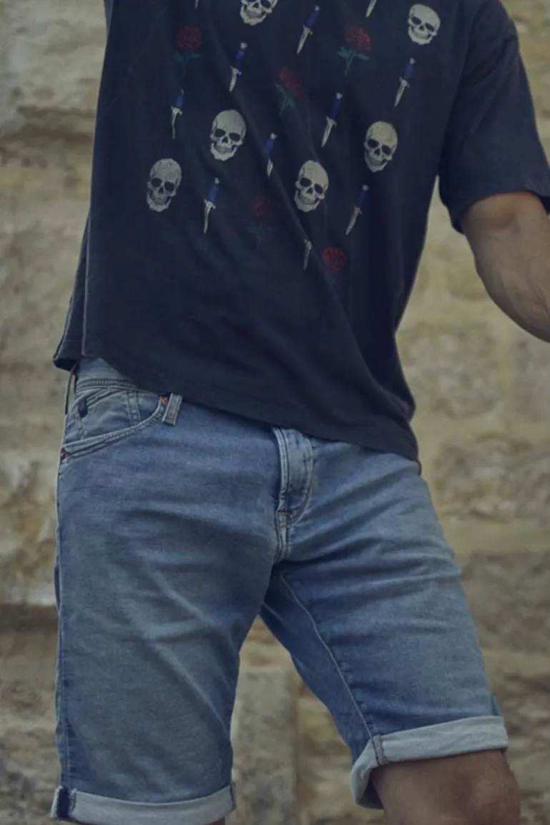 Ce Bermuda A Toile Tres Stretch Vous Donnera Un Look Casual Avec Son Delavage Bleu.