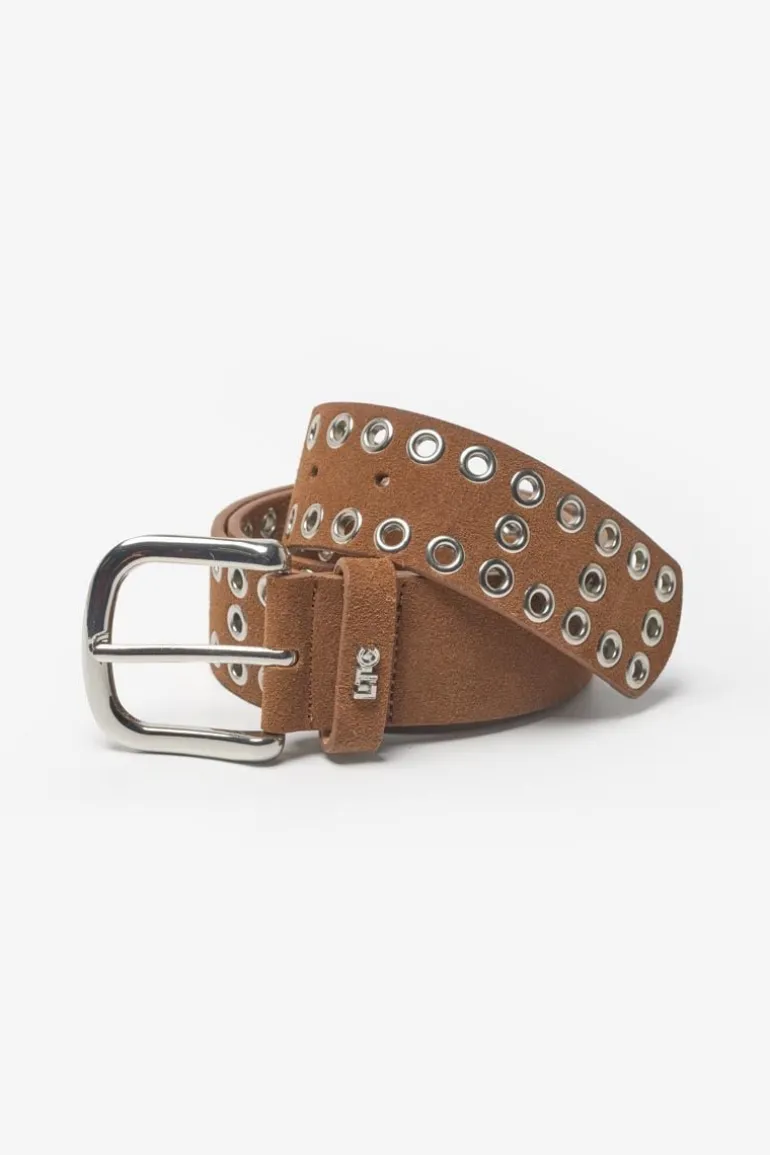 Cette Ceinture Lucia Est Ideale Pour Completer Vos Tenues Et Donner Un Cote Rock Avec Son Cuir Velours Pour Un Aspect Daim Cognac Habille D’Oeillets Metalliques Argentes Et Sa Boucle Argentee.