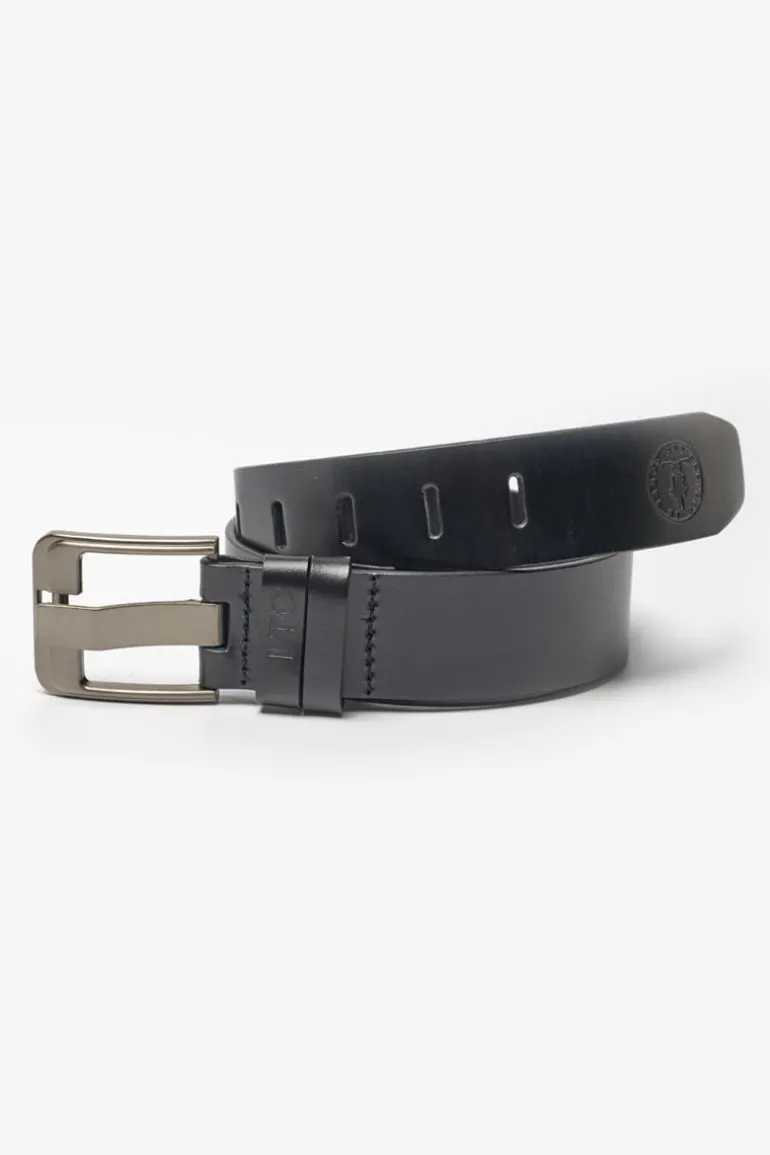 Cette Ceinture En Cuir Noir Ostra Apportera De La Simplicite A Vos Tenues Avec Son Passant Personnalise Ltc, Son Logo En Relief Sur Le Bout De La Ceinture Et Sa Boucle Metallique Argentee.