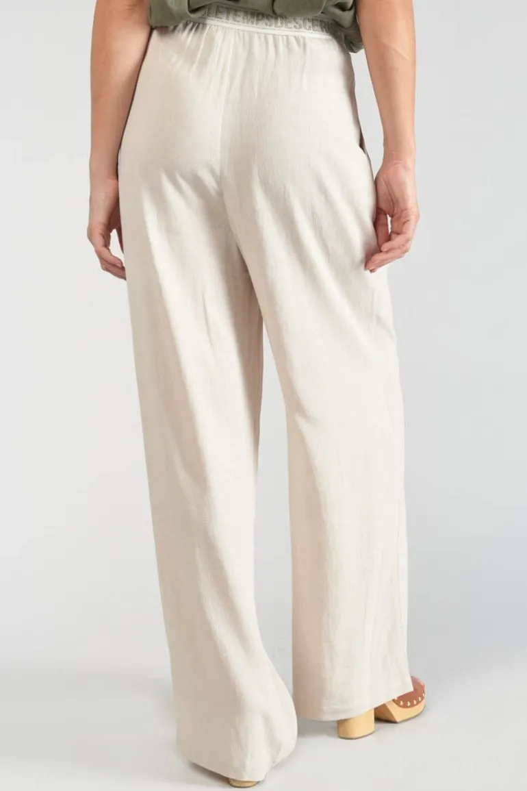 Ce Pantalon Sagua Sable Est Tres Habille Et Chic Avec Ses Pinces Au Niveau De La Taille, Son Tissu Fluide Et Leger Ideal Pour La Saison Estivale Et Sa Ceinture Elastiquee A L’Arriere Et Personnalisee Le Temps Des Cerises En Fils Brillants Dores.