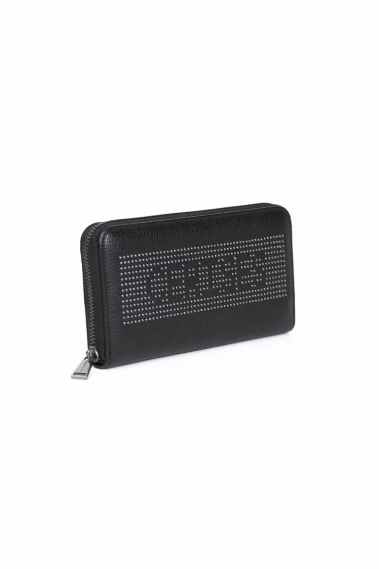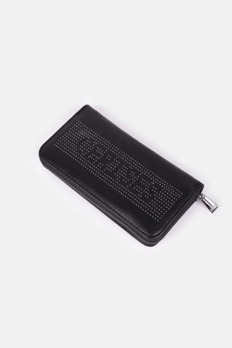 Ce Portefeuille Loren Noir Est Un Indispensable Avec Son Format Tout-En-Un Et Son Inscription Cloutee « Cerises » Qui Apporte Un Cote Rock.