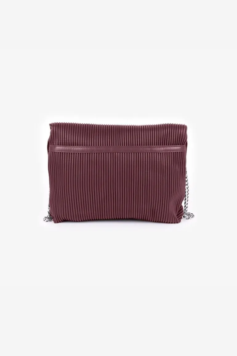 Ce Sac Leter Bordeaux Est Le Sac A Avoir Au Quotidien Qui Allie Style Rock Et Confort Avec Sa Matiere A L’Effet Plisse, Sa Bandouliere En Chaine Argentee Et Ses Multiples Compartiments : A L’Arriere Ferme Par Un Bouton Pression, A L’Interieur Du Rabat Ferme Par Une Fermeture Zippee A Double Zip Et Sous Le Rabat Ferme Par Des Aimants Invisibles. Son Renfort D’Epaule Cloute Et Personnalise « Cerises » Ainsi Que Son Inscription Metallique Argentee « Le Temps Des Cerises » A L’Avant Apportent Plus De Style. Pour Plus De Confort, Sa Bandouliere Permet Un Porte Epaule Ou Travers.