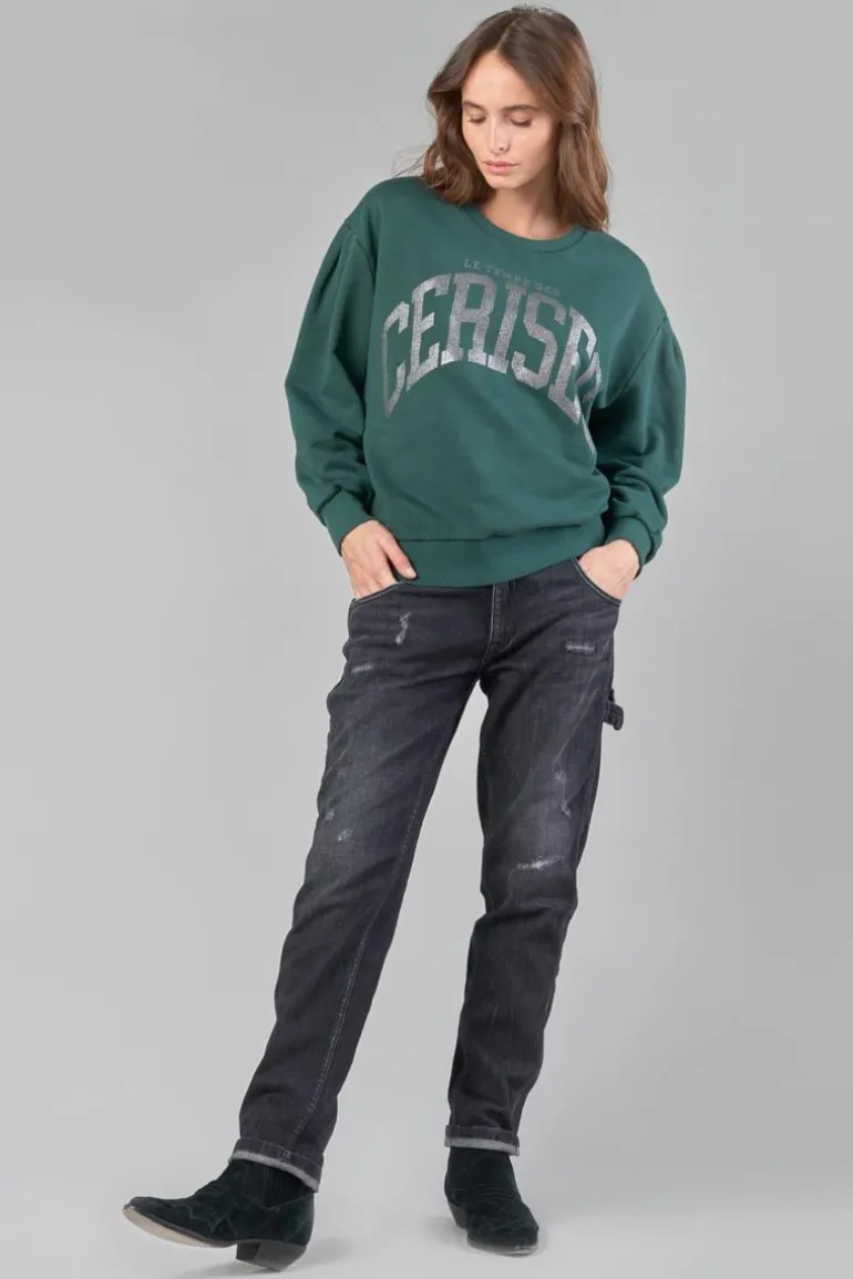 Le Temps des Cerises Sweat Moa Vert Bouteille Imprime-Femme Pulls & Sweats & Cardigans