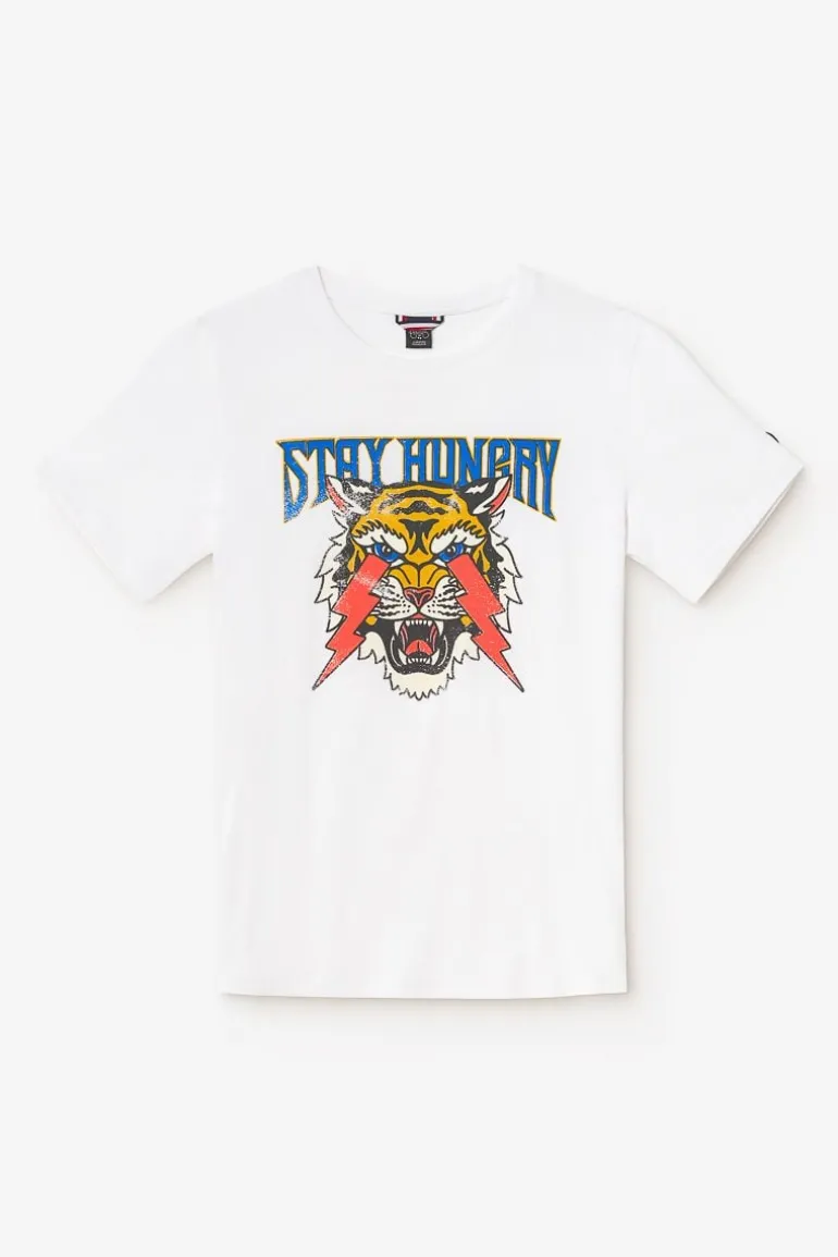 Ce T-Shirt Yair Blanc A Un Look Vintage Avec Son Imprime Fantaisie Colore. Pour Le Detail, Un Ecusson Le Temps Des Ceris…