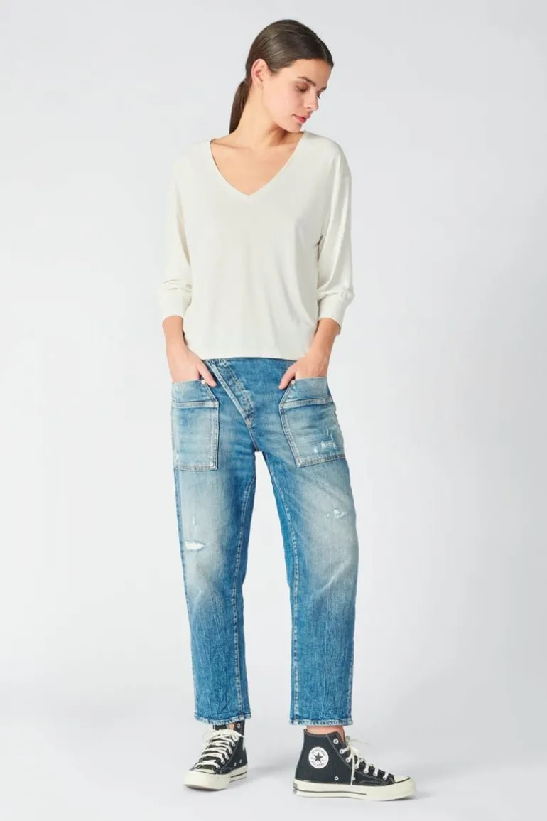 Ce Top Jessie Est Tres Feminin Avec Son Col V, Sa Couleur Creme Et Son Tissu Fluide Et Doux Tres Agreable A Porter, Tout En Restant Casual Avec Sa Coupe Loose Et Ses Manches 3/4.