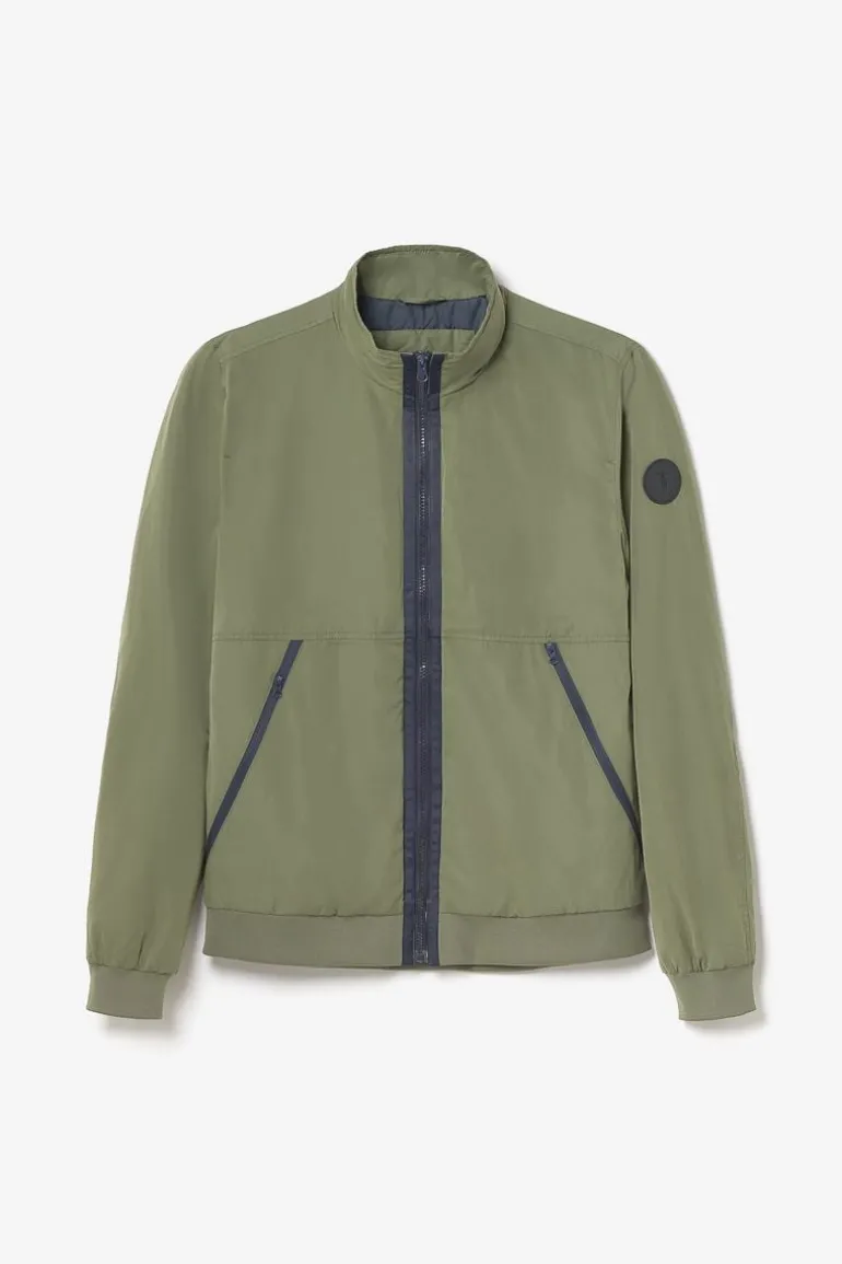 Cette Veste Domb Est Tres Elegante Avec Sa Couleur Kaki Melangee A Bleu Marine Au Niveau De La Fermeture Zippee Centrale Et Des Poches. Pour Plus De Confort, Son Col Est Montant, Ses Deux Poches Zippees A L’Avant Sont Grandes Et Une Poche Zippee Interieure Complete La Piece. Pour Le Detail, Un Ecusson Personnalise Le Temps Des Cerises Habille La Manche Gauche.